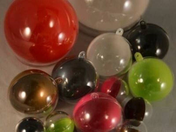 Bol 2-delig glitter rood kunststof met ophang gat.