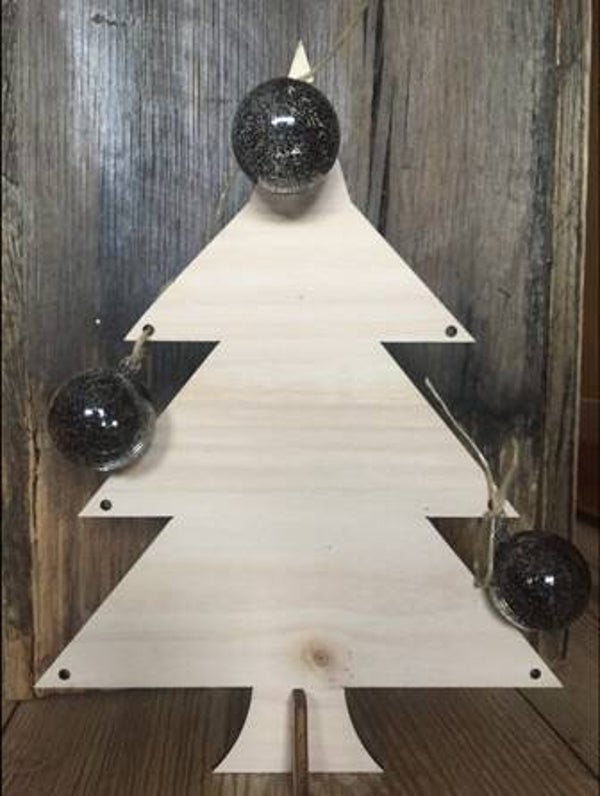 Kerst boom hout met gaten voor bollen 50x36x0,4 cm