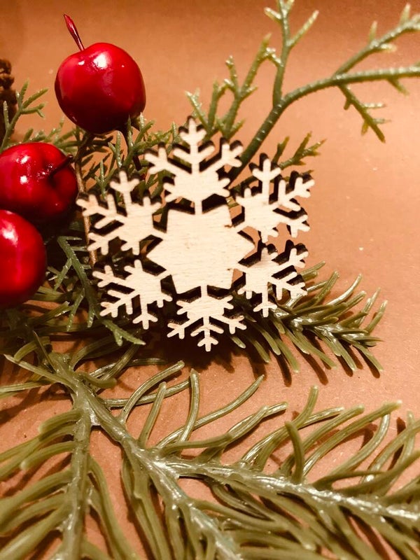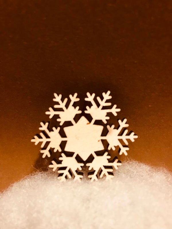 Houten sneeuwvlok met ster in het midden. Deze houten sneeuwvlok is te verkrijgen in de volgende maten: