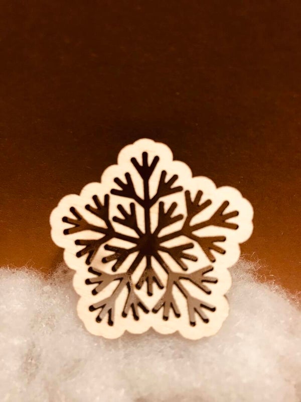 Houten sneeuwvlok met fijn uitgesneden delen. Deze sneeuwvlok van hout is te verkrijgen in de volgende maten: